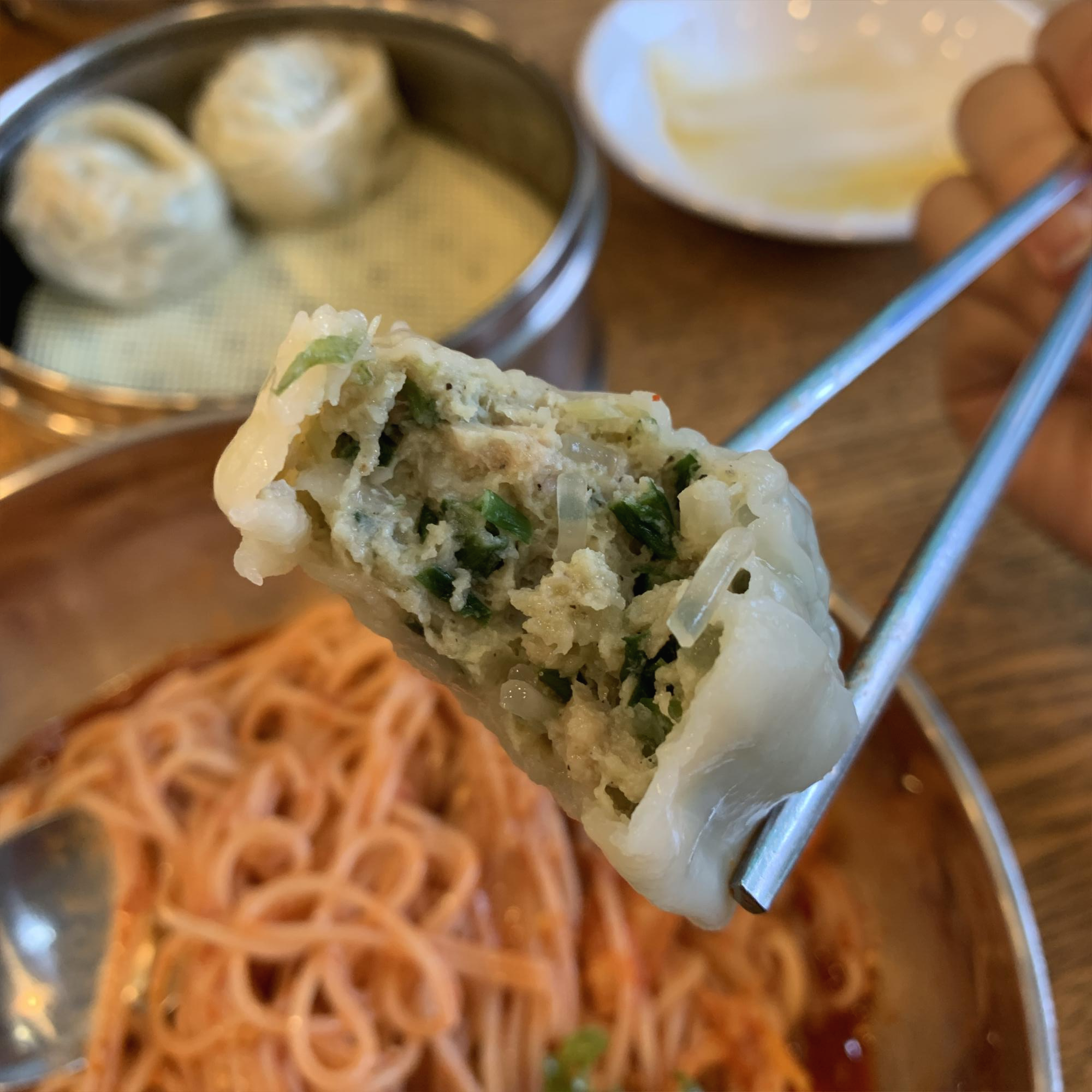 우리는 비빔국수가 먹고싶어 비빔국수2개와 손만두 1개 주문.