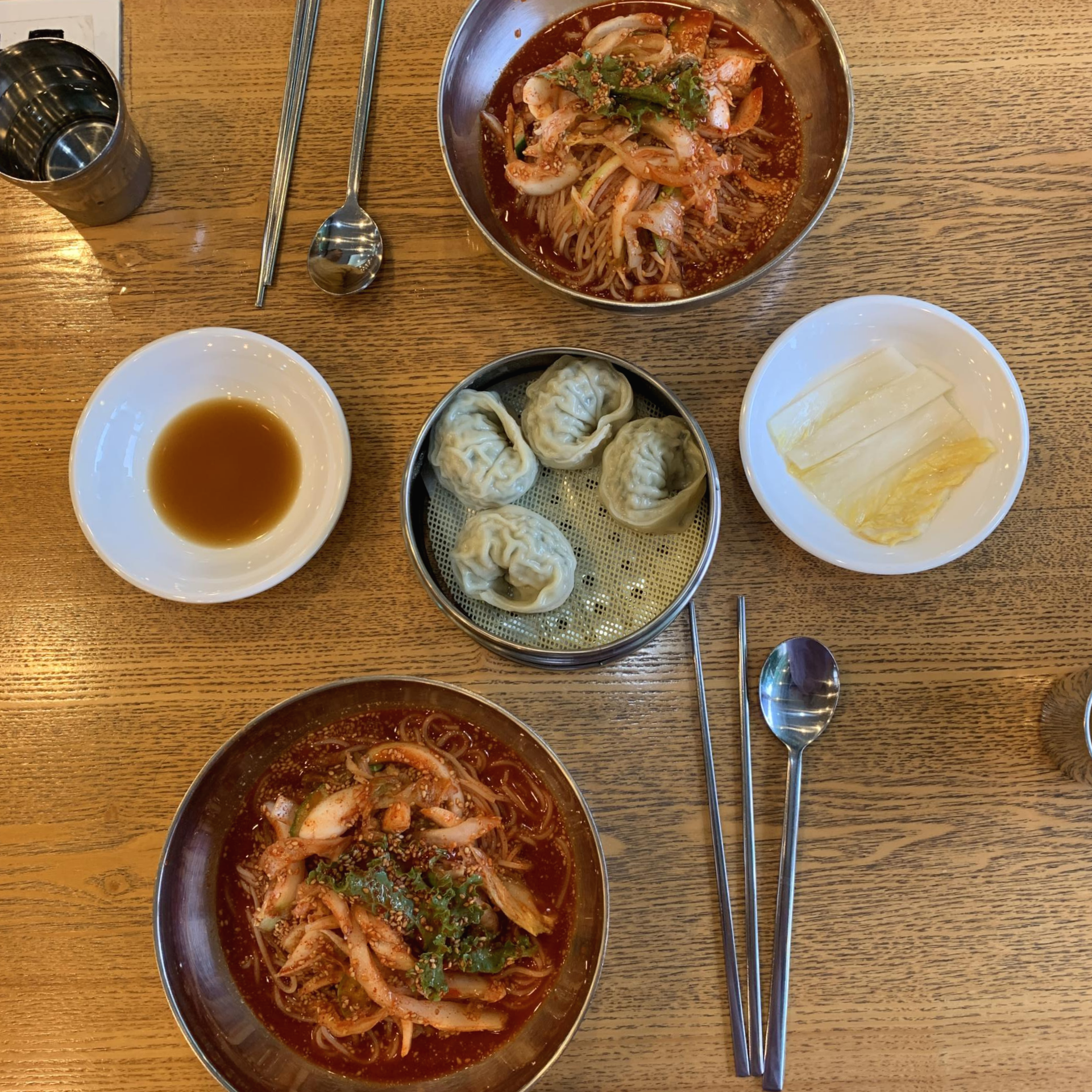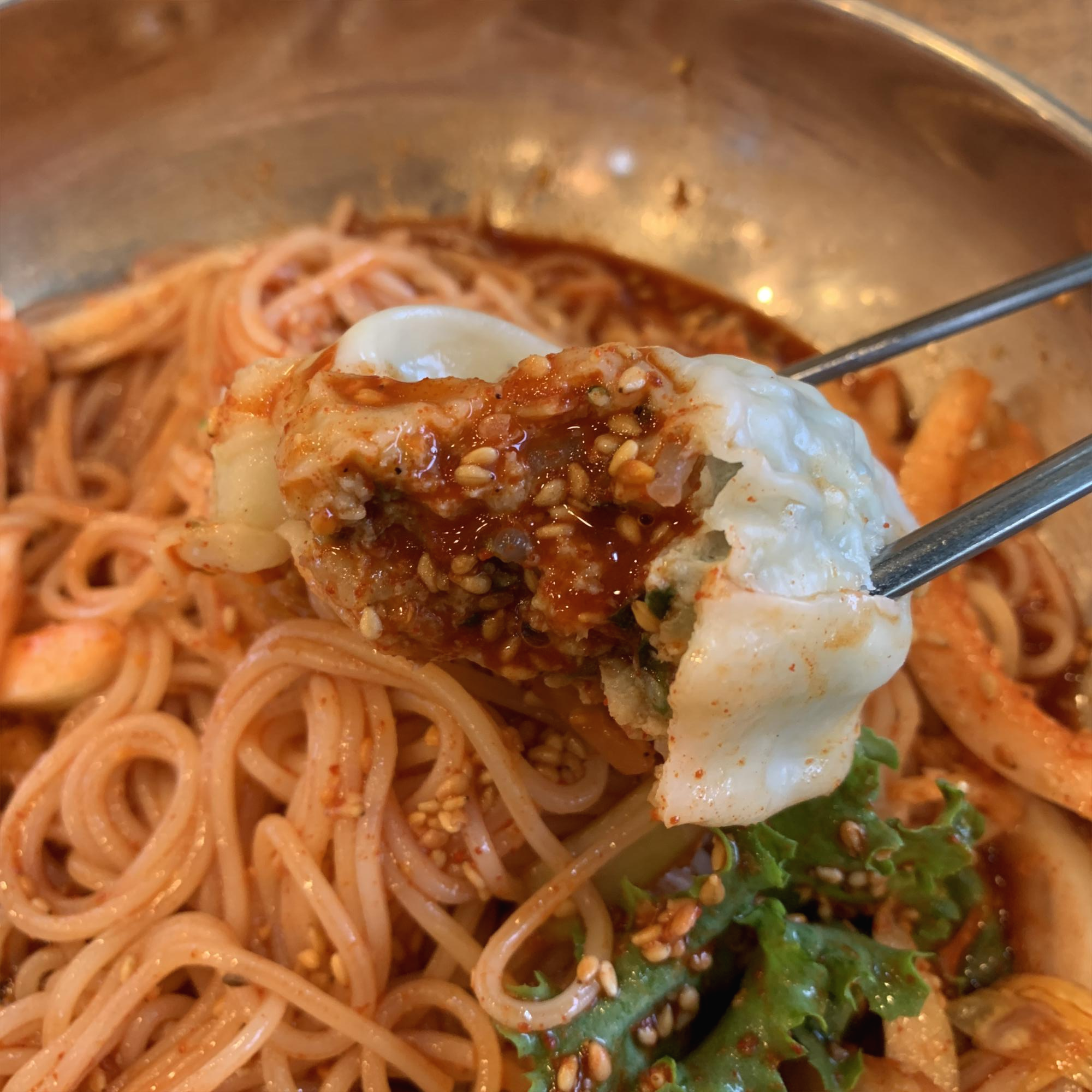 만두와 비빔국수가 함께 나왔다.