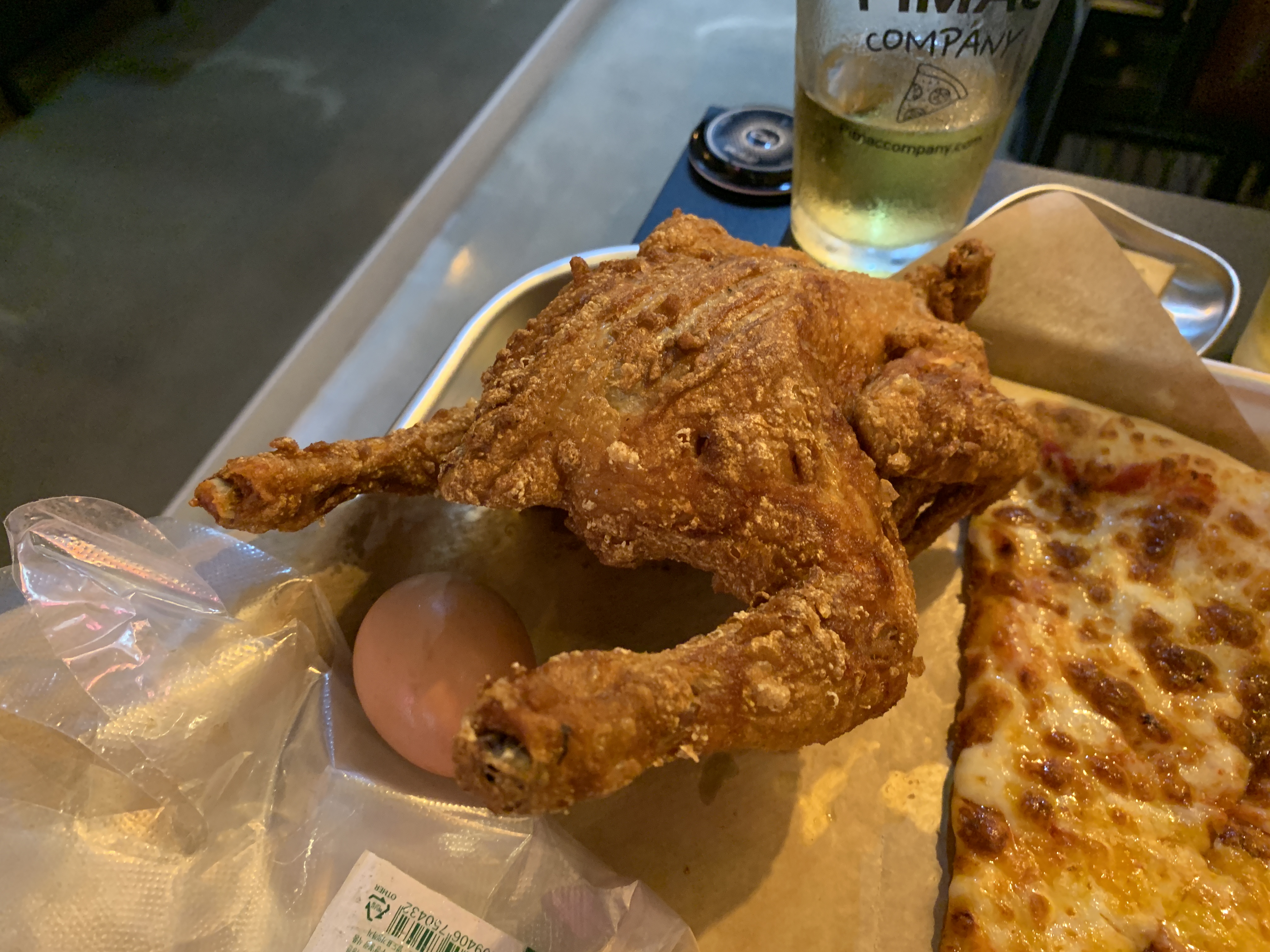 +옛날통닭 + 삶은계란 + 떡볶이를 함께 먹을 수 있다.