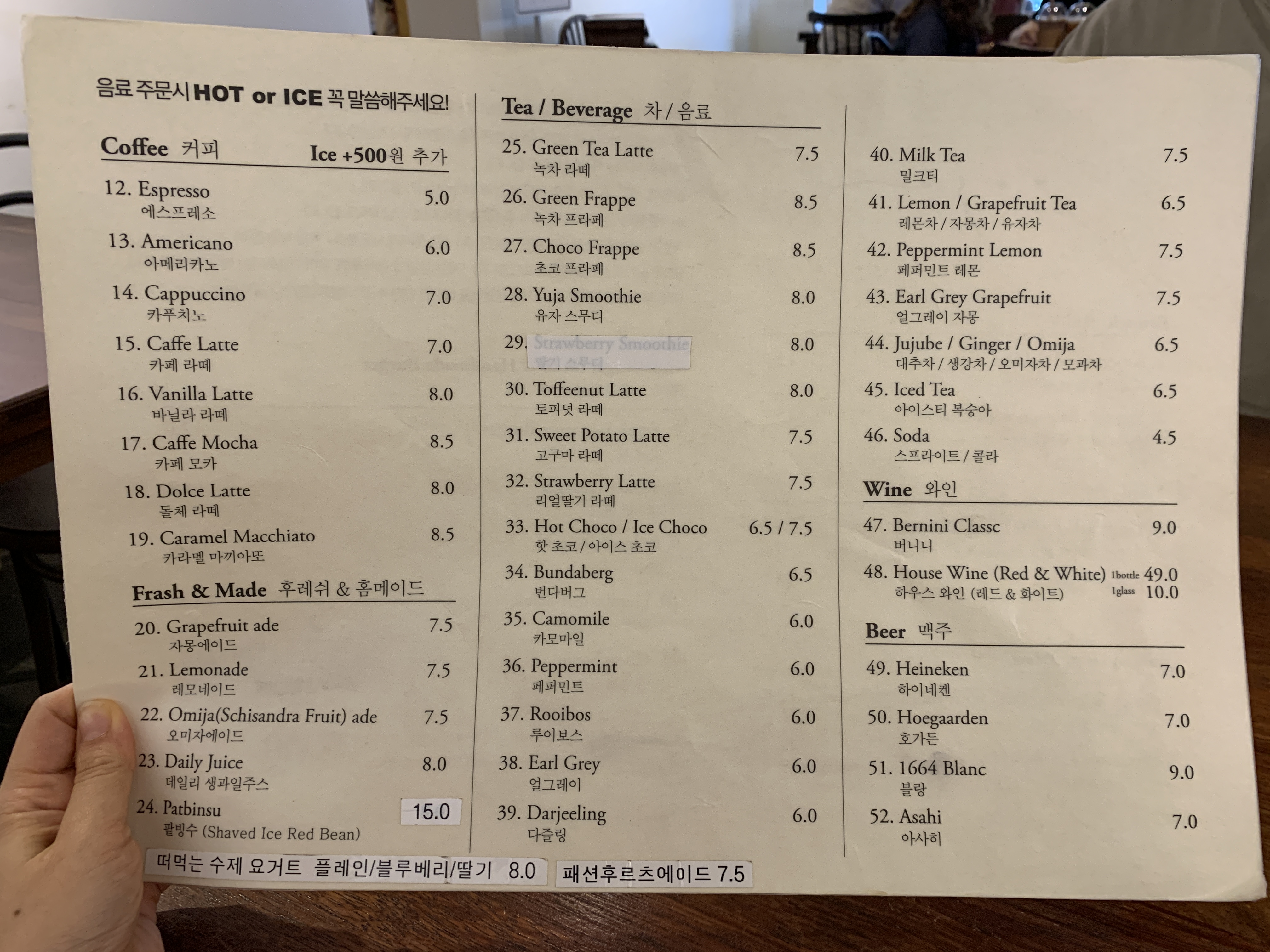 남양주 카페 요새 메뉴 및 가격표를 담아왔어요.