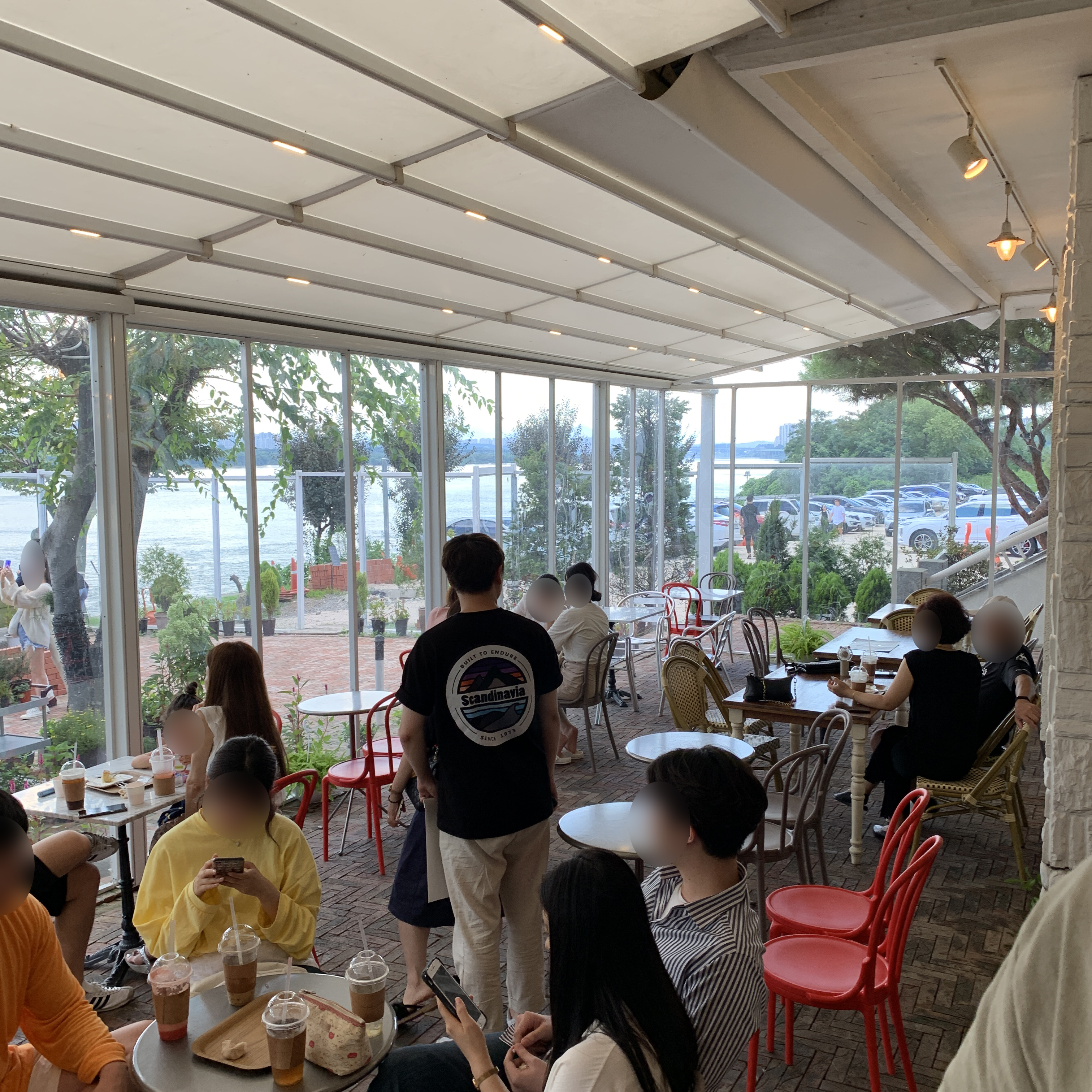 1층실내에서도, 반야외에서도 한강을 고즈넉하게 바라볼 수 있도록