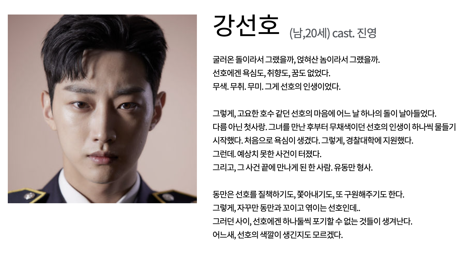 그와 너무도 어울리는 경찰의 꿈을 가지고