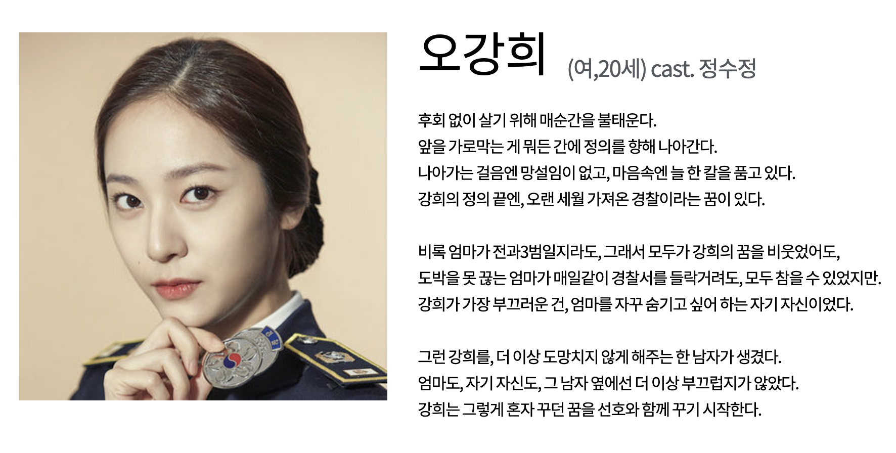 참사랑으로 강희 따라서 경찰대학까지 지원.