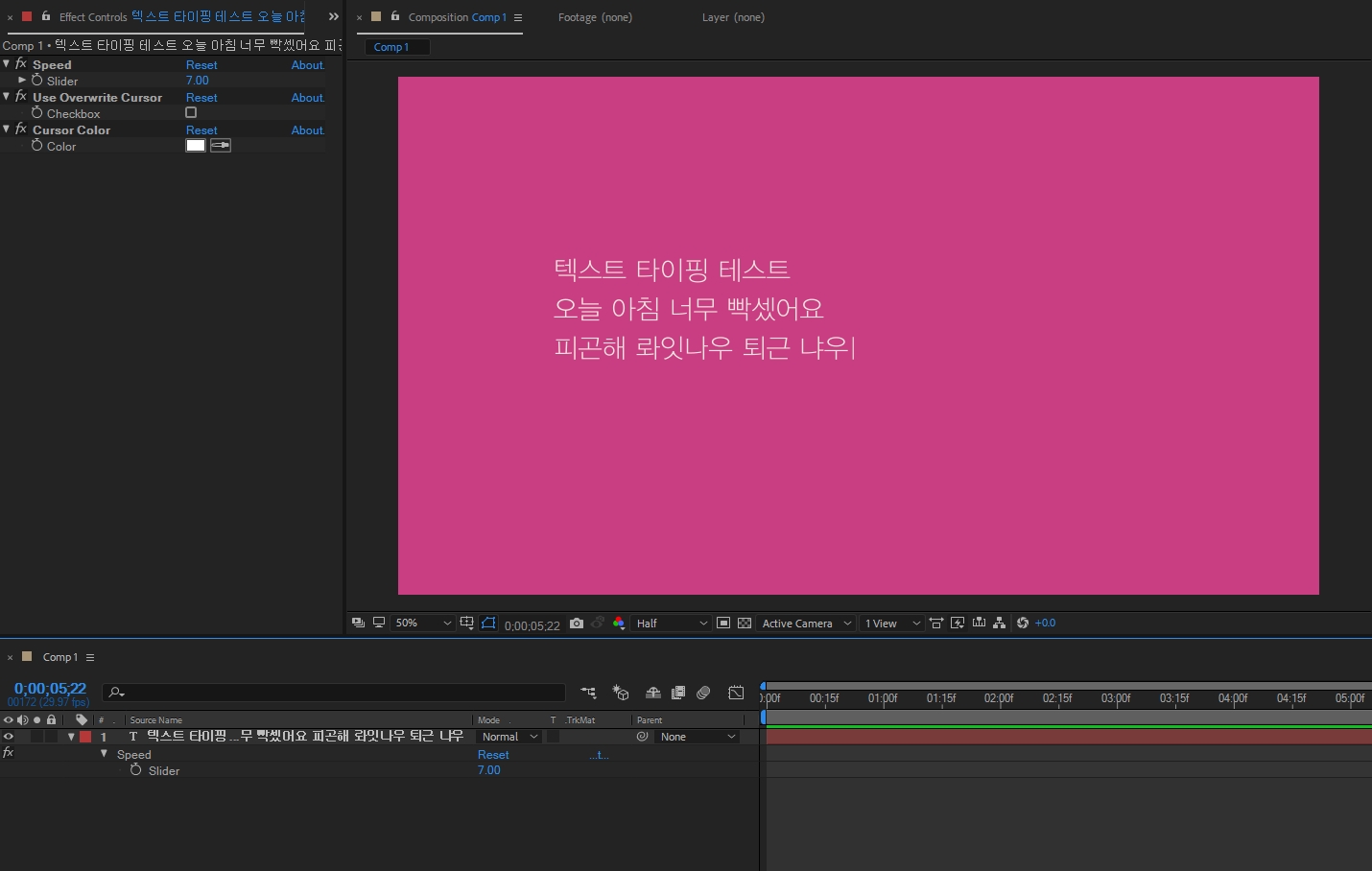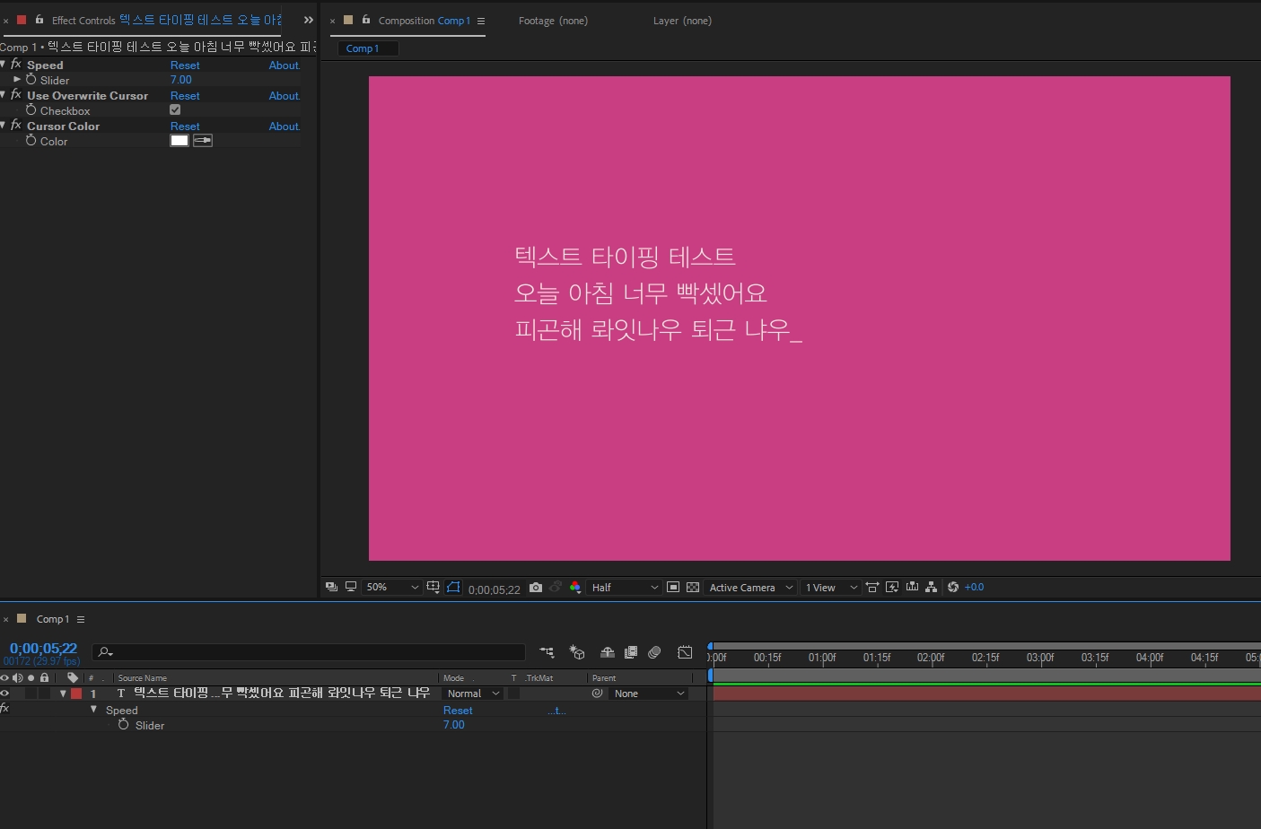 에프터이펙트 강좌, 텍스트 애니메이션 (글자 타이핑 효과)