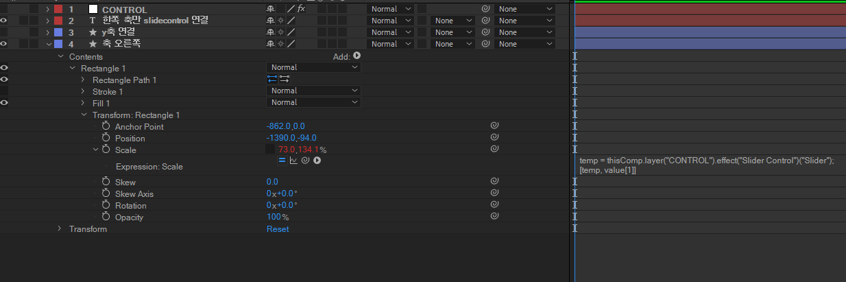 2. 레이어의 X,Y축 중 한 축만 Slider control에 연결하고 싶을 때