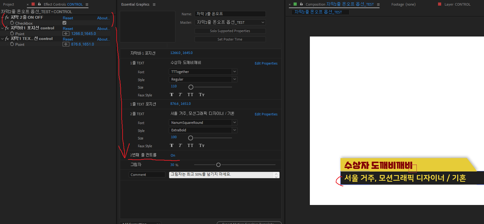 thisComp.layer("CONTROL").effect("자막 2줄 ON OFF")("Checkbox")*100