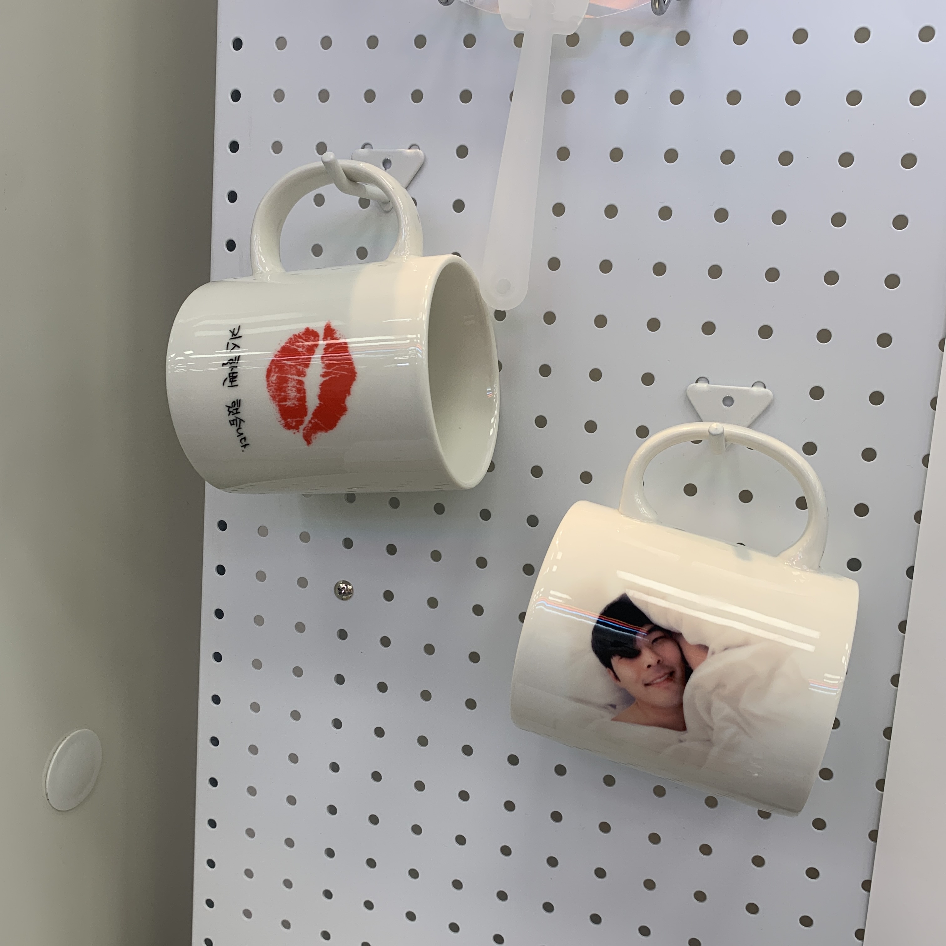 카페사장 최준의 키스마크가 붙어있는 머그컵.