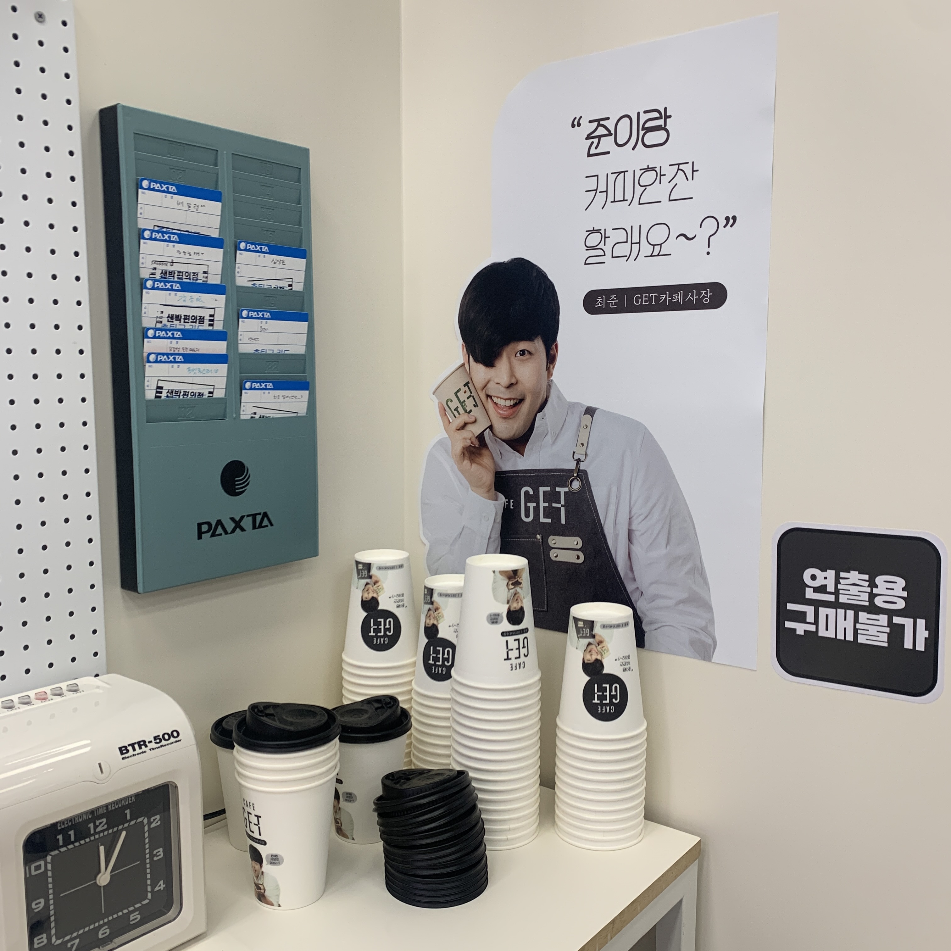 입장하려면, 편의점 간판 아래에 있는 기계에