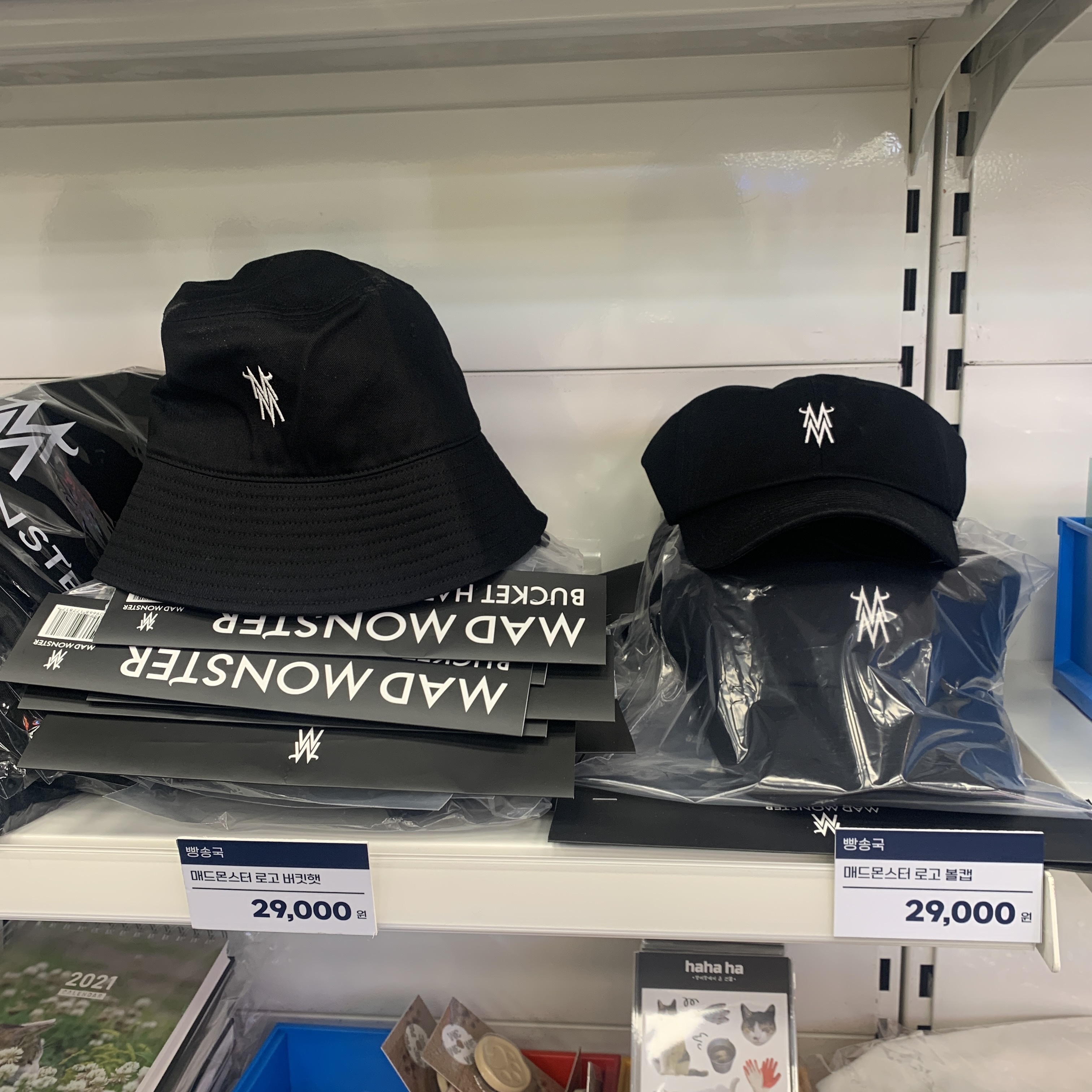 매드몬스터의 로고버킷햇과 볼캡은 구매할 수있어요.