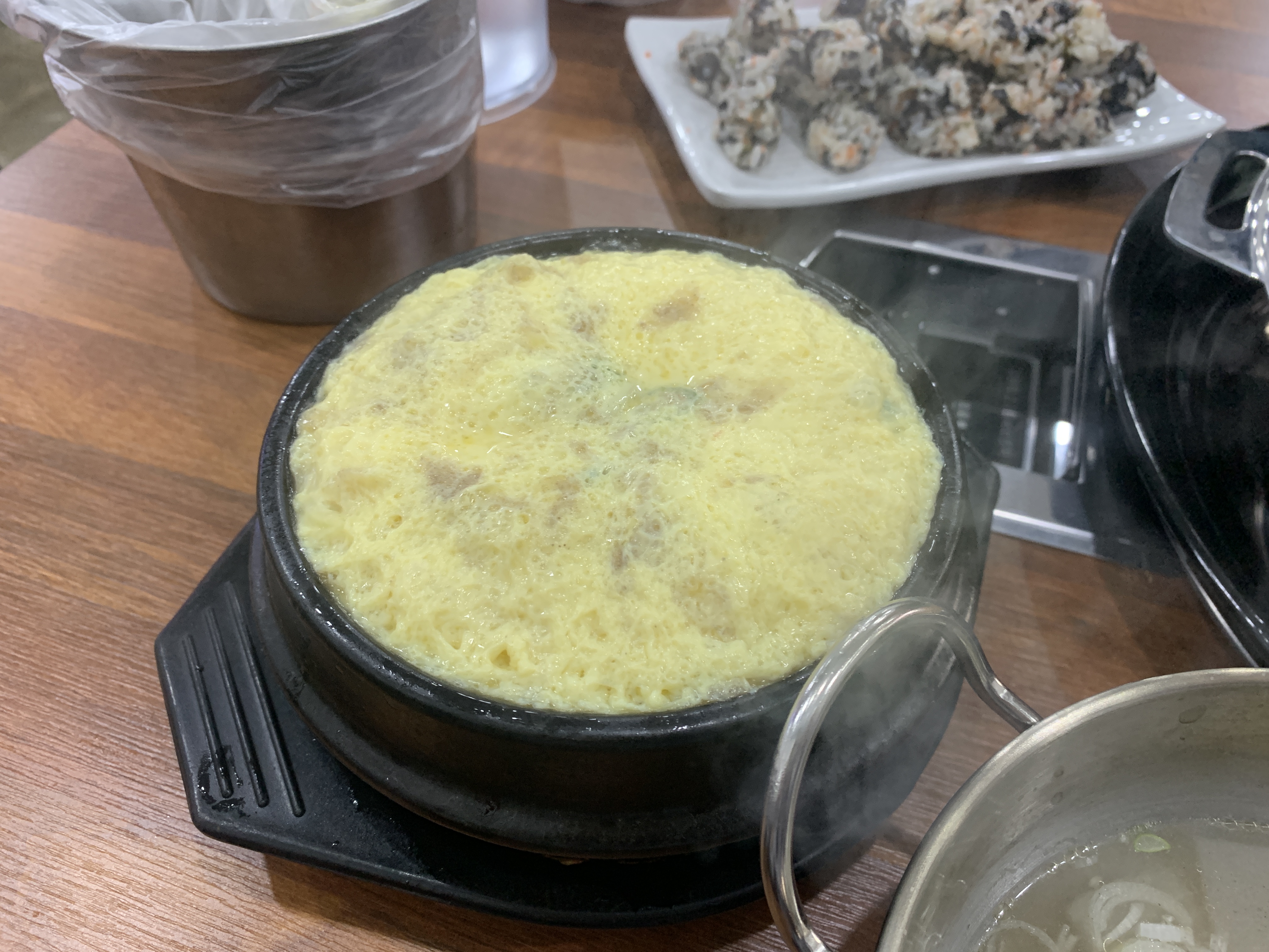 거기에 주먹밥과 계란찜 추가.