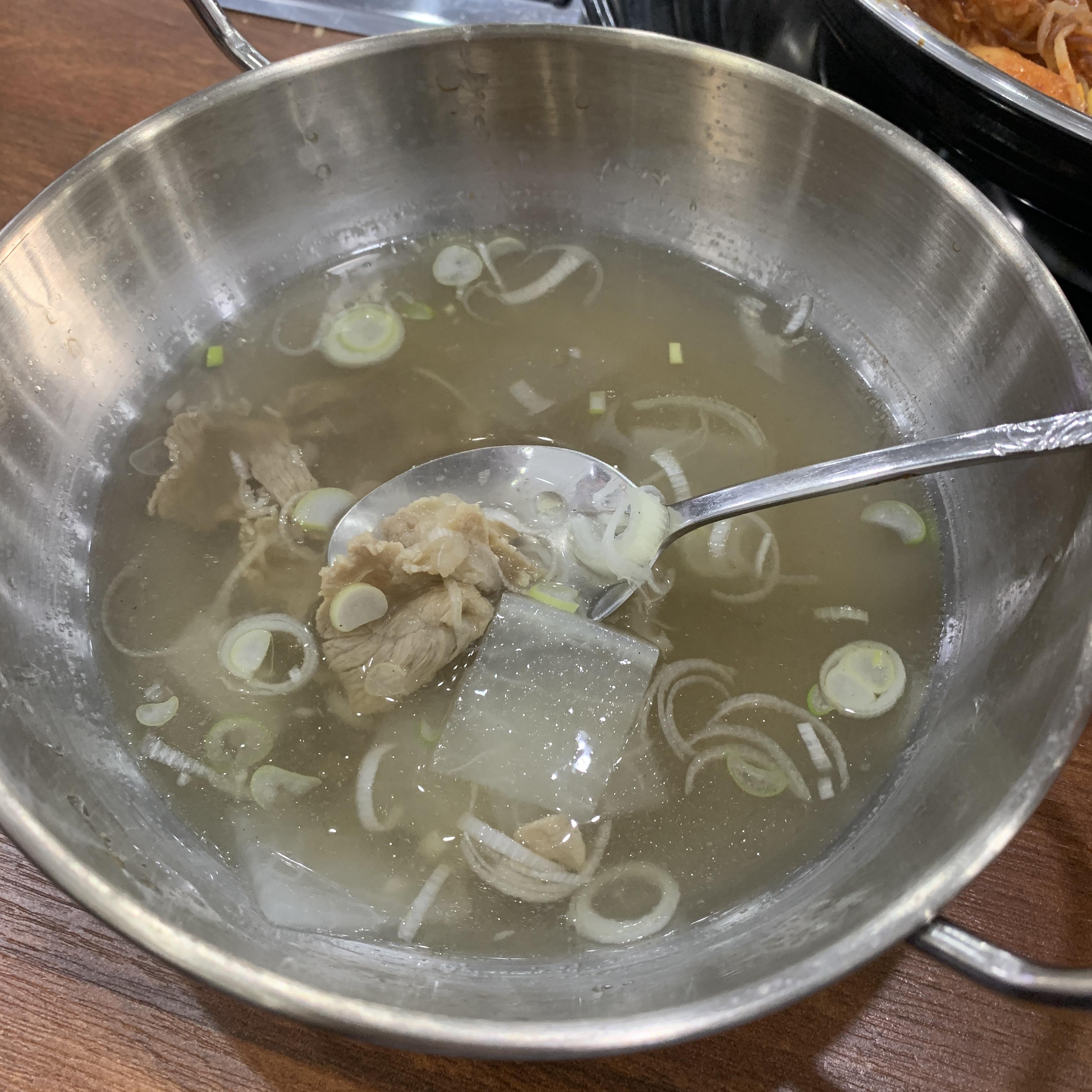 갈비찜이 나오기 전에 기본 반찬으로 소고기무국이 나오는데,