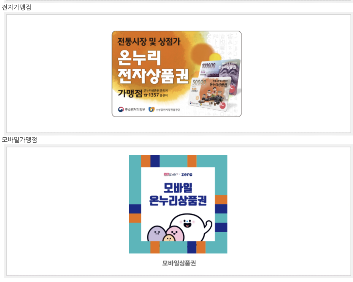 전자상품권만 사용가능한 곳도 있고, 전자+모바일 함께 사용가능한 곳. 또 모바일만 가능한 곳도 있습니다.