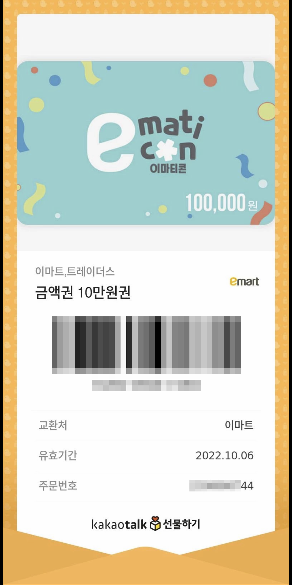 이마트 모바일 금액권은 주로 카카오톡 선물하기나