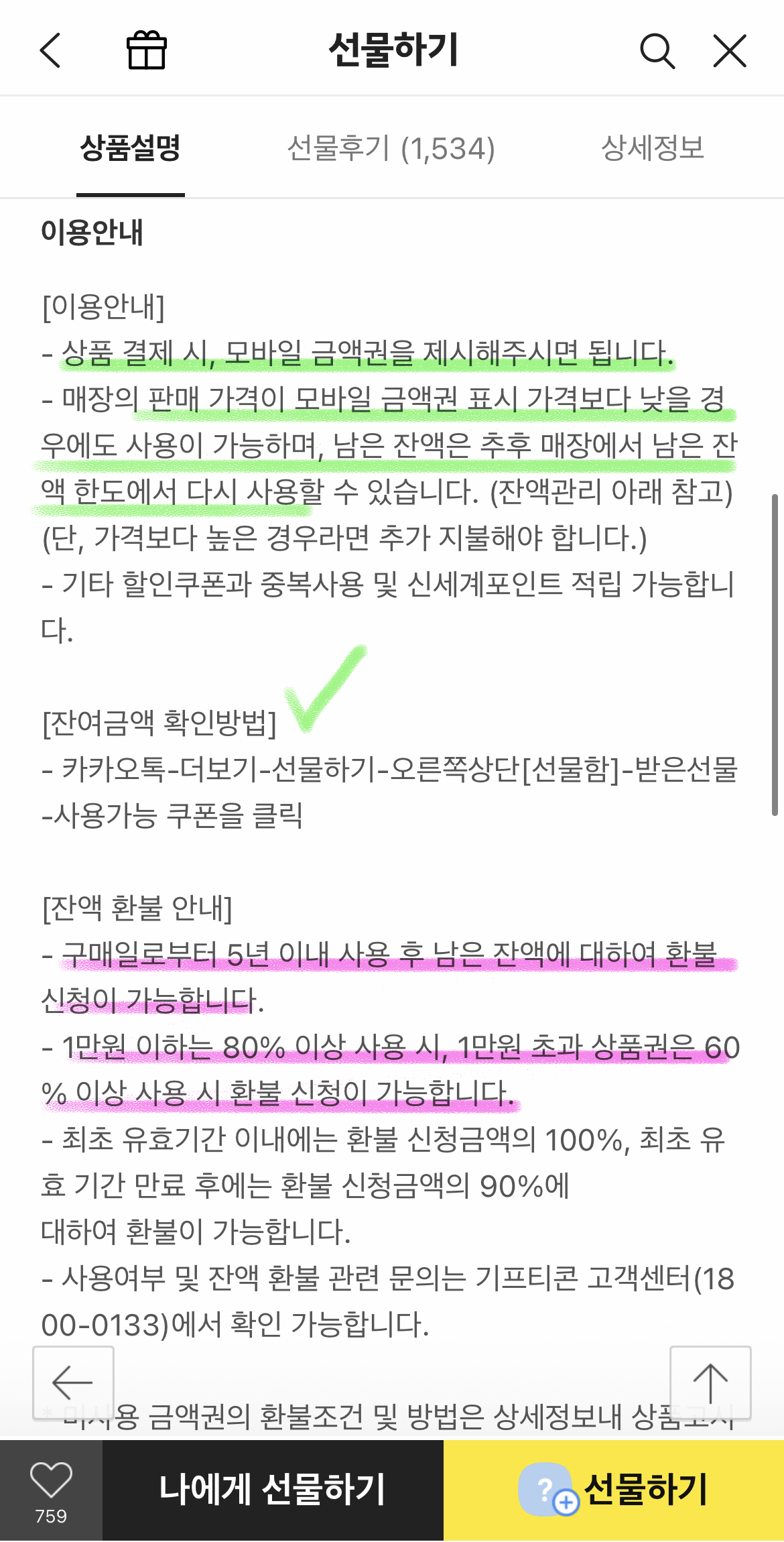 카카오 선물하기에도 써있네요.