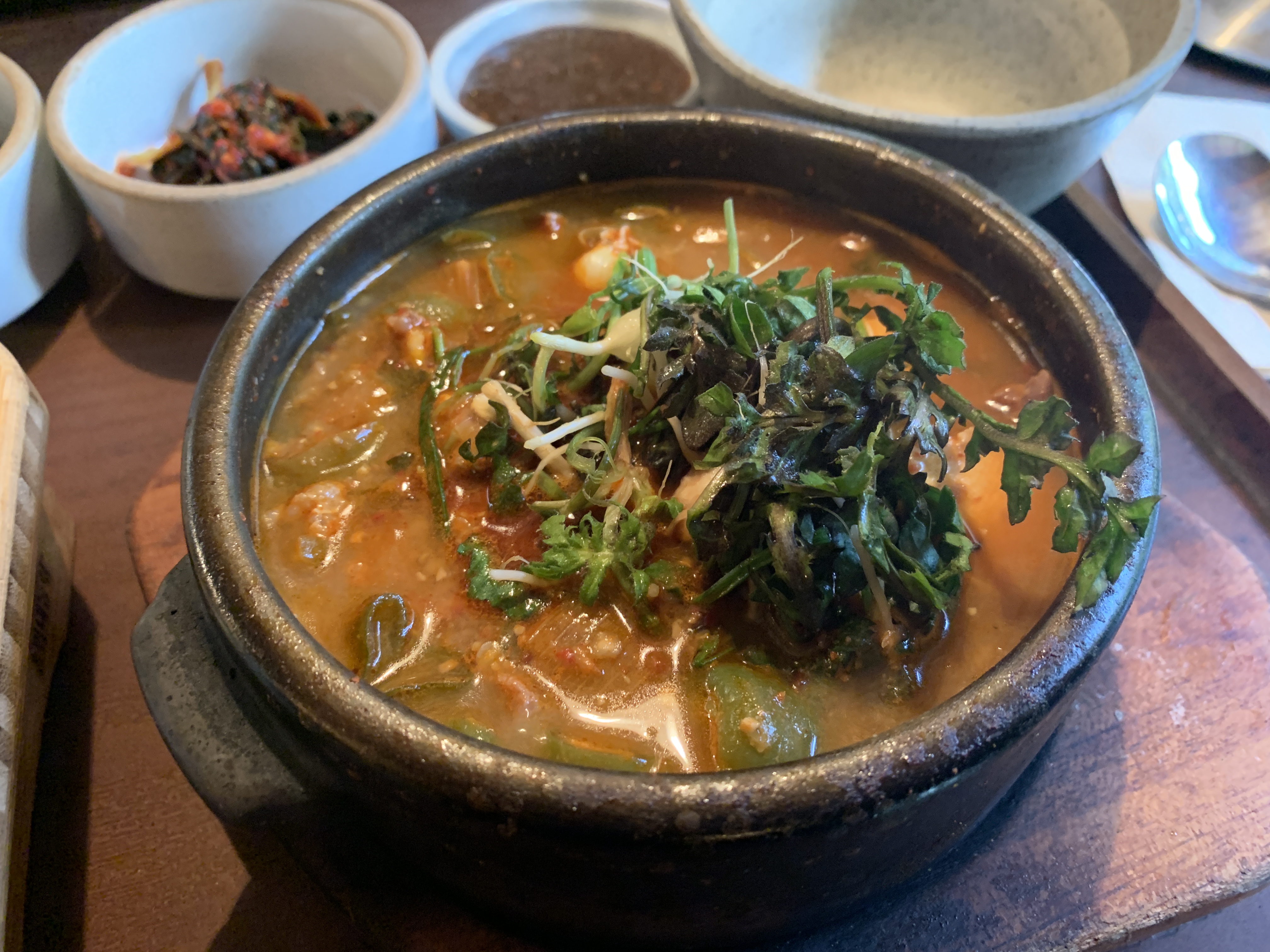 잘 식지 않게 뚝배기에 담겨나온다.