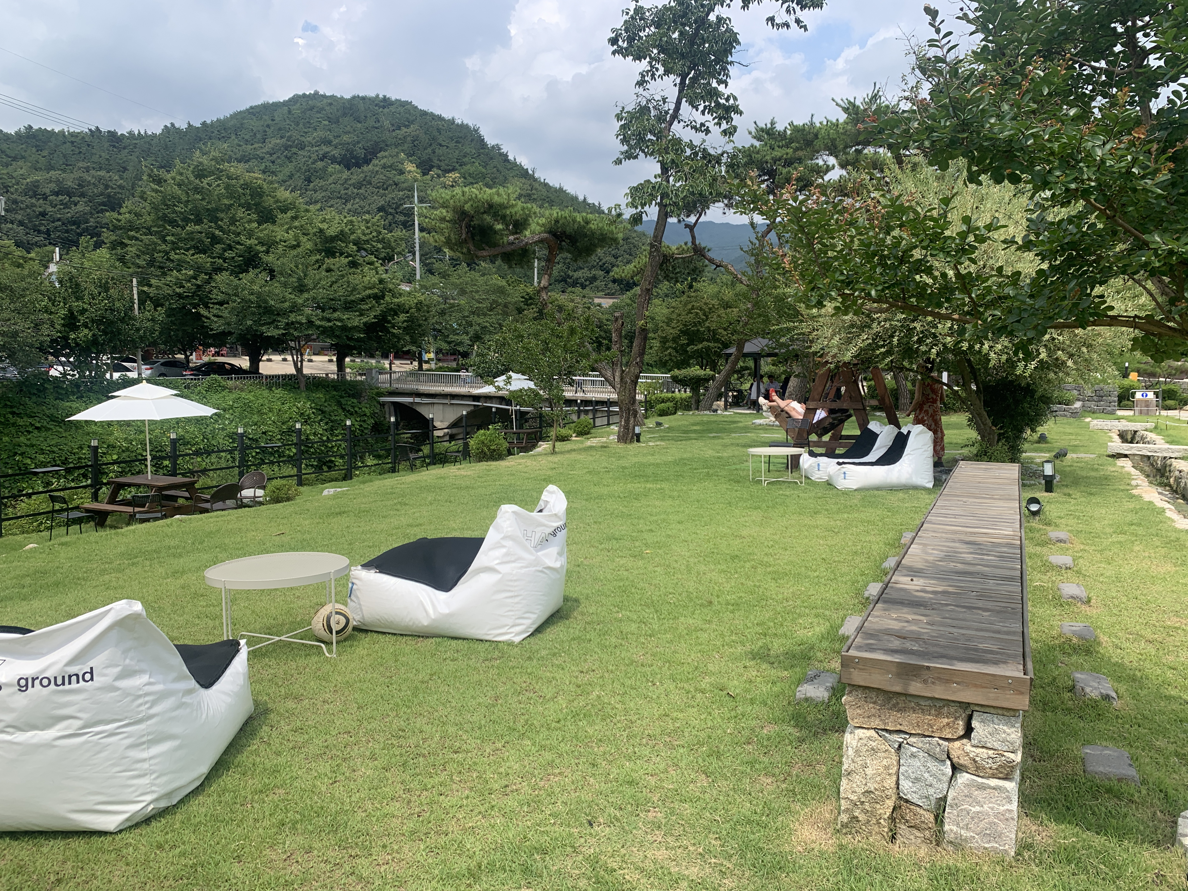 광활한 잔디 덕분에 분위기가 정말 좋아요.