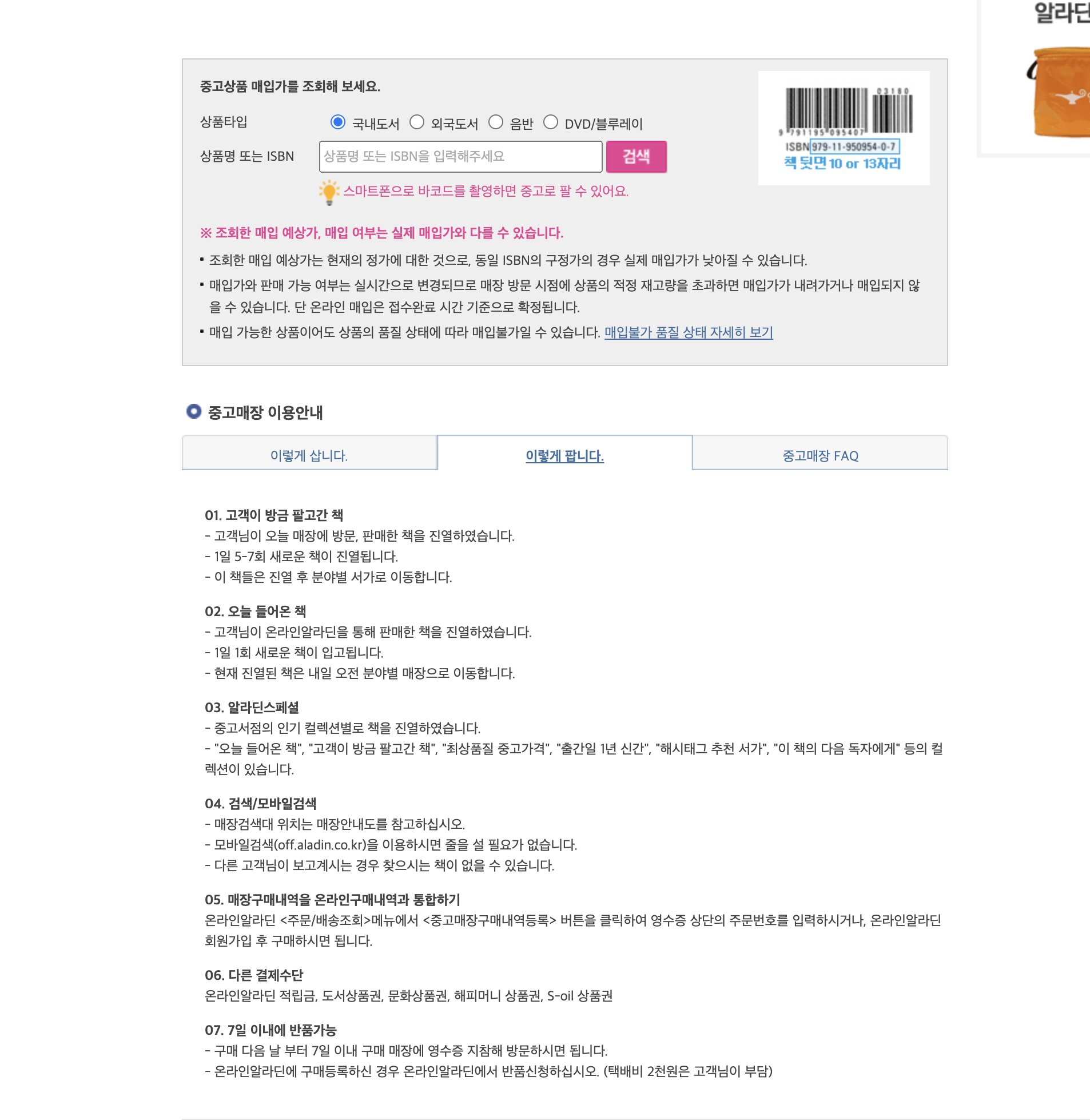 "알라딘 가서 중고책 팔기"