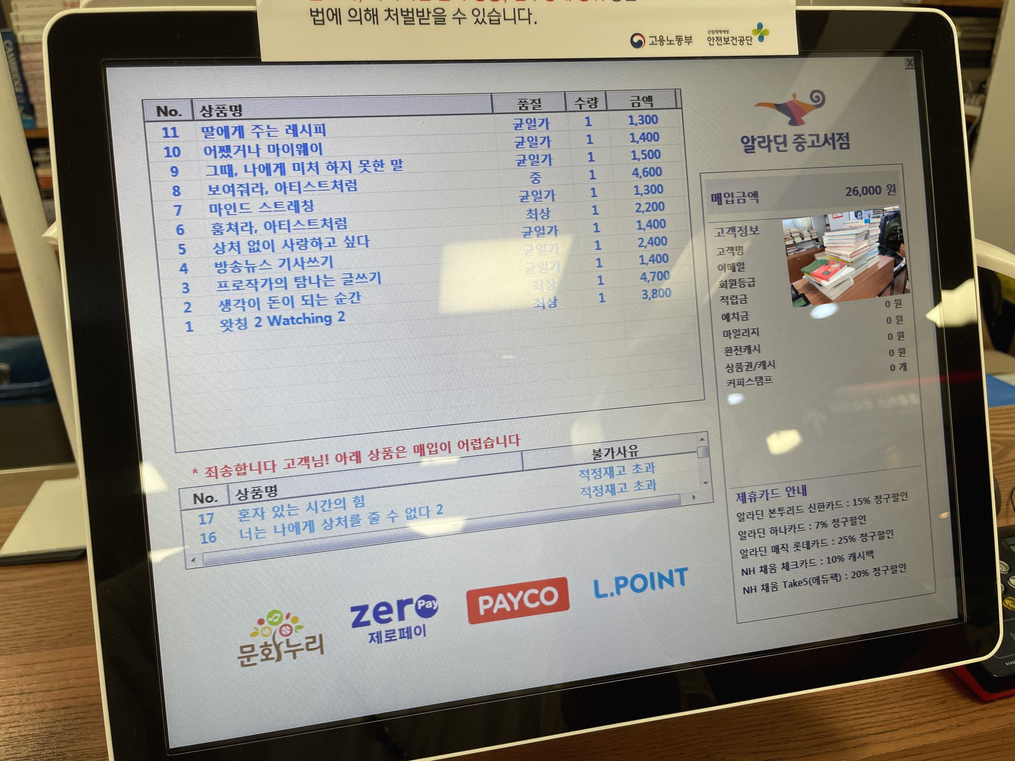 직원분에게 중고책을 팔러왔다고 말한 후에