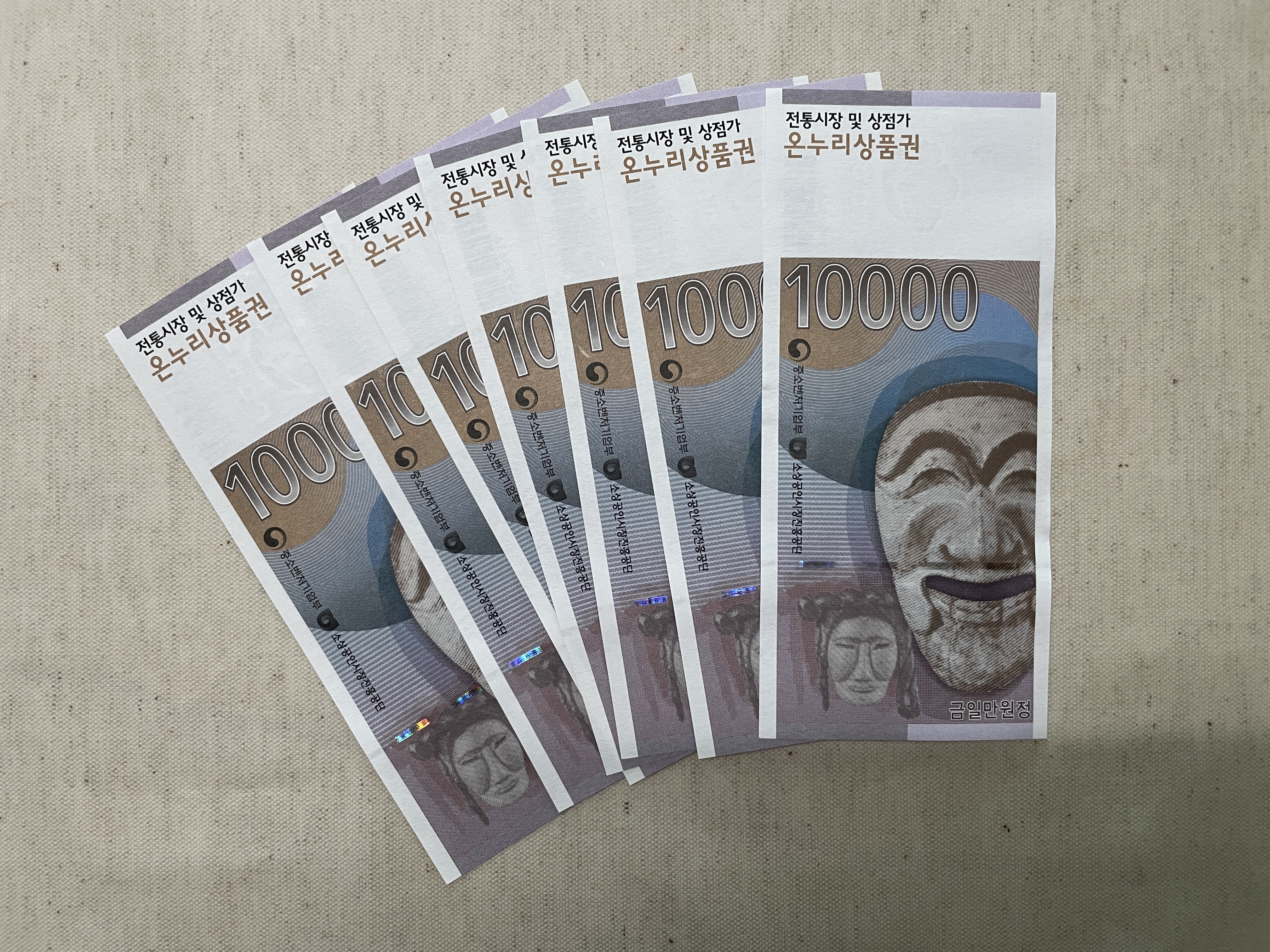 예를 들어 2만원 온누리상품권을 들고 가서 1만3천원 정도 사용하면 7천원 정도는 돌려받을 수 있다는 것이죠.