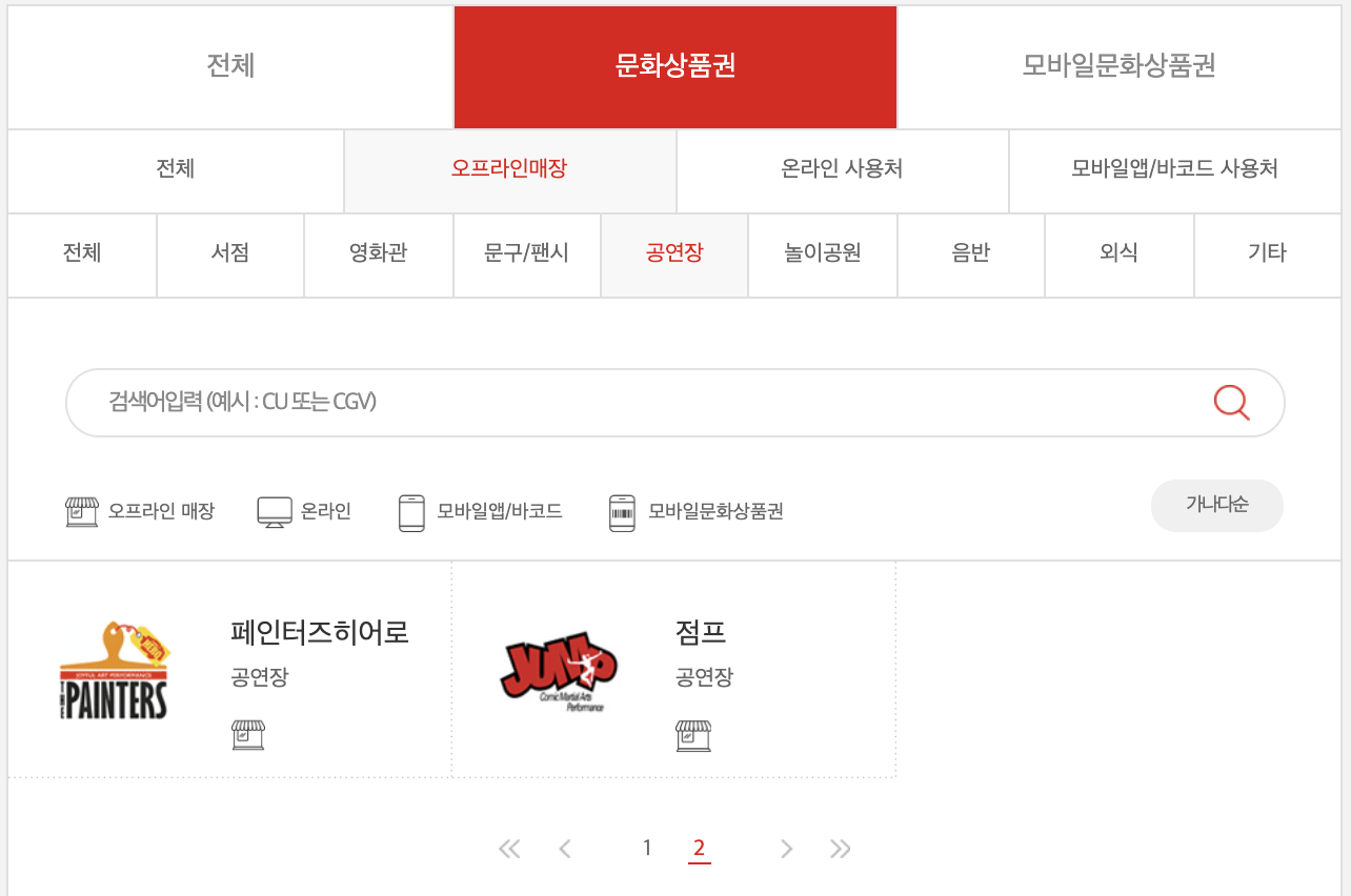 컬쳐랜드문화상품권 오프라인 사용처 및 온라인 사용처도 검색 가능합니다.
