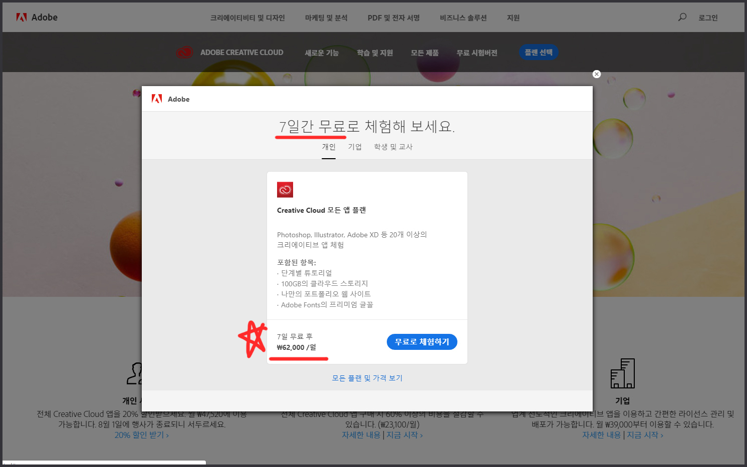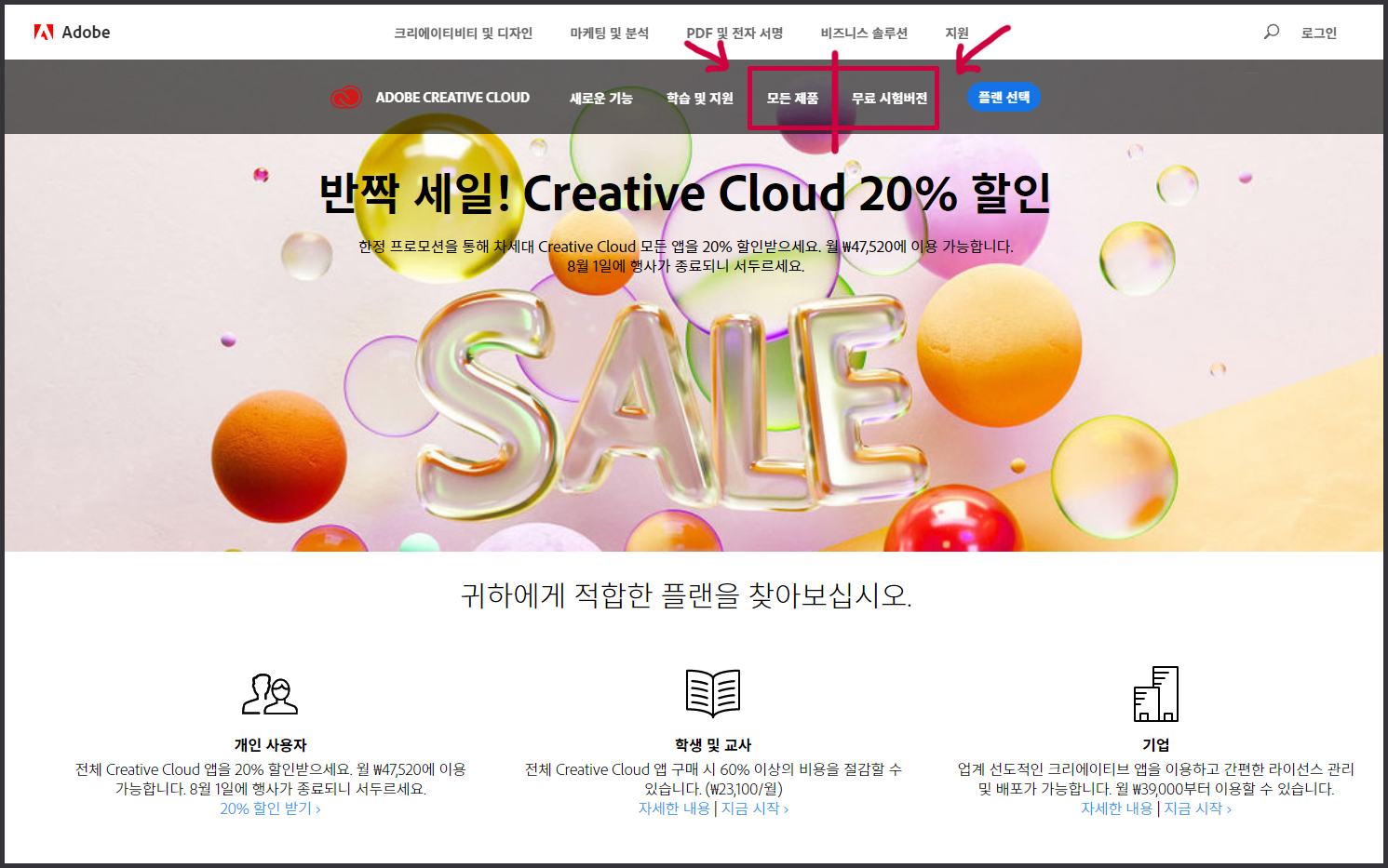 1. 검색창에 adobe 또는 어도비를 검색한다.