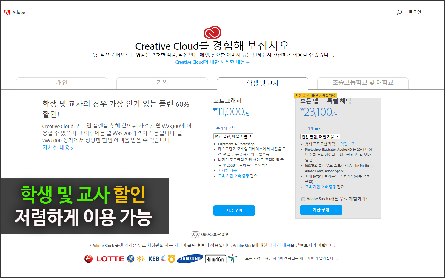 학생 및 교사는 특별혜택으로 할인을 해주고 있는데,
