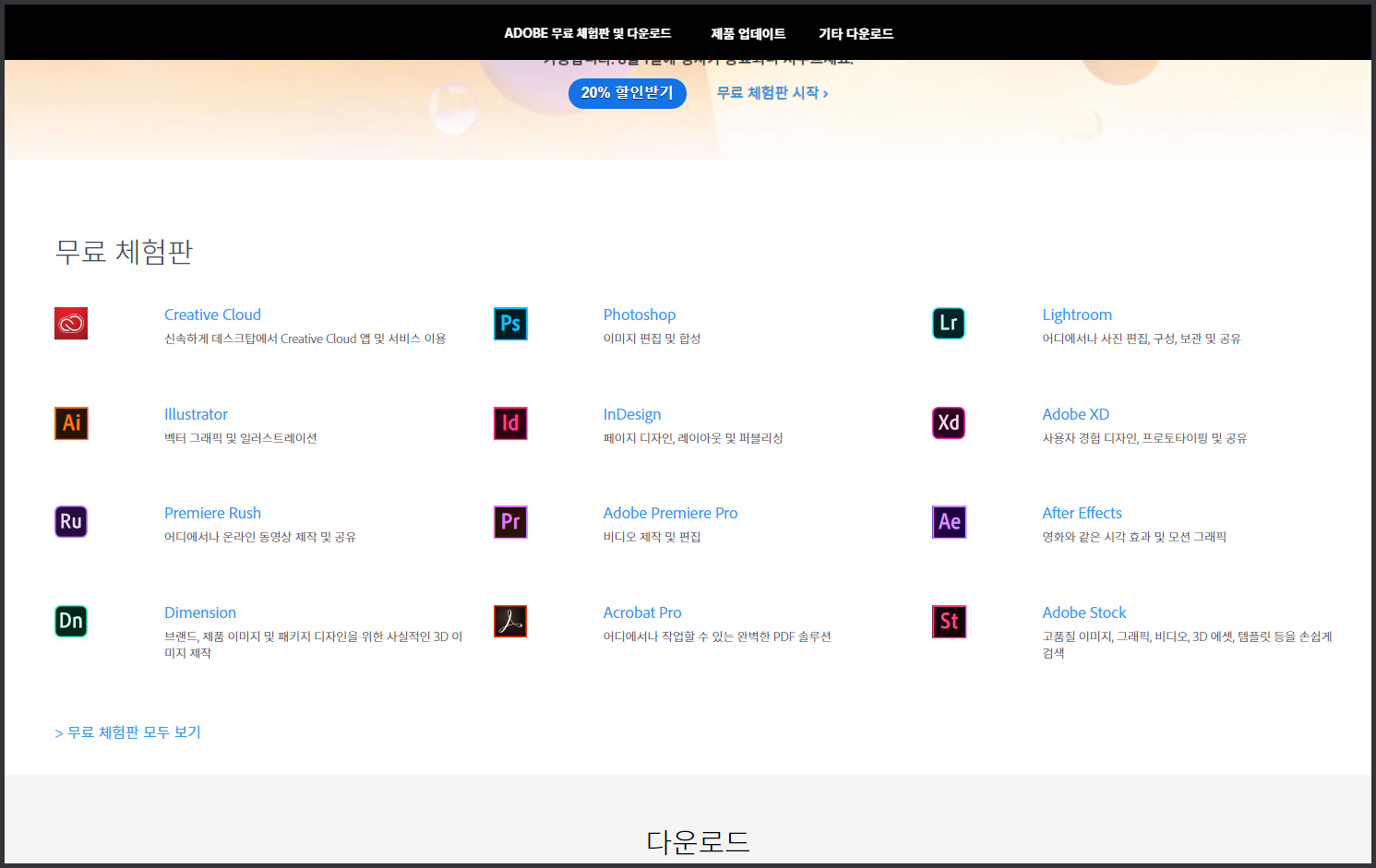바로 프리미어, 에프터이펙트를 다운로드할 수 있는 창으로 들어간다.