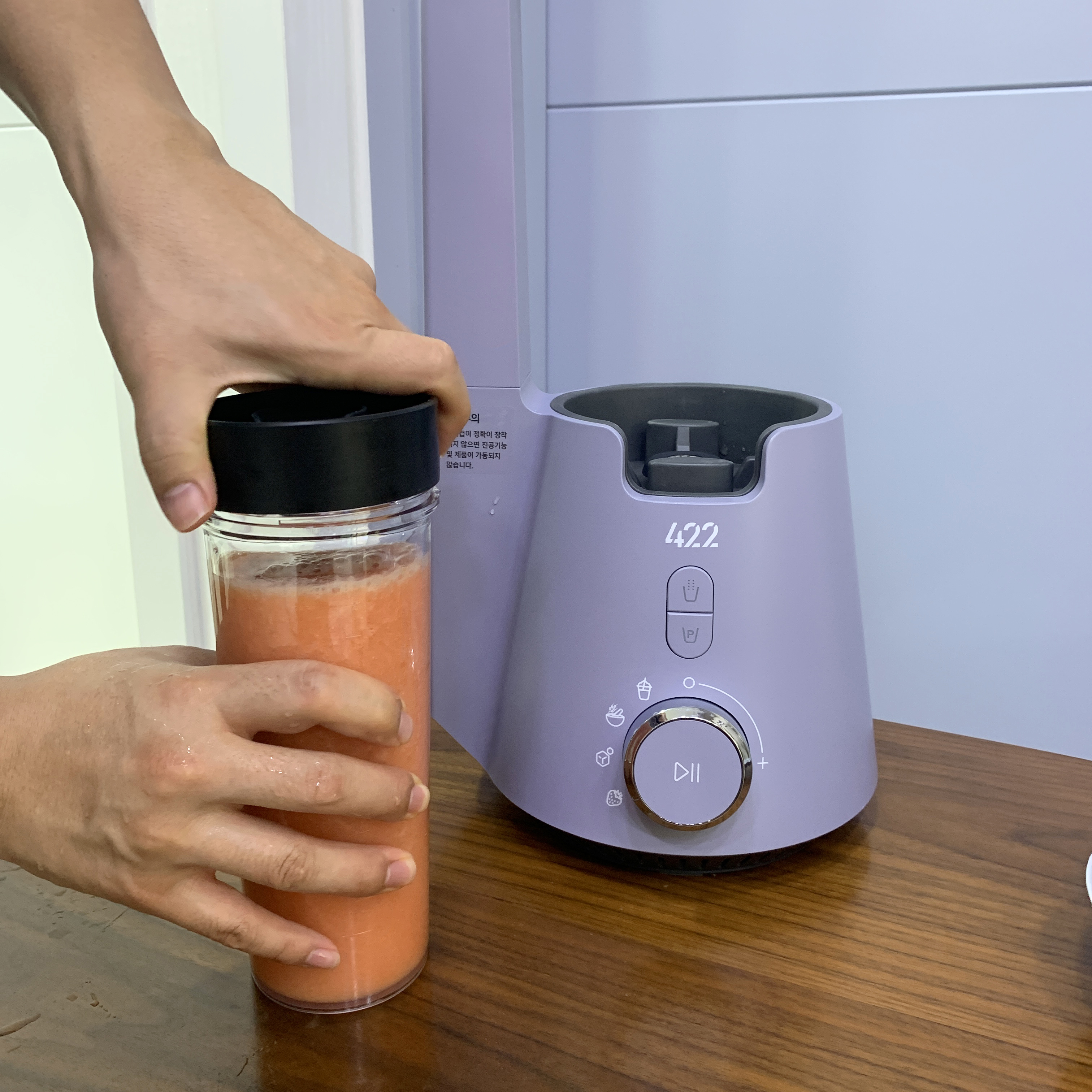 난 스무디모드, 분쇄모드, 생과일 주스 모드로 블렌딩해봤는데